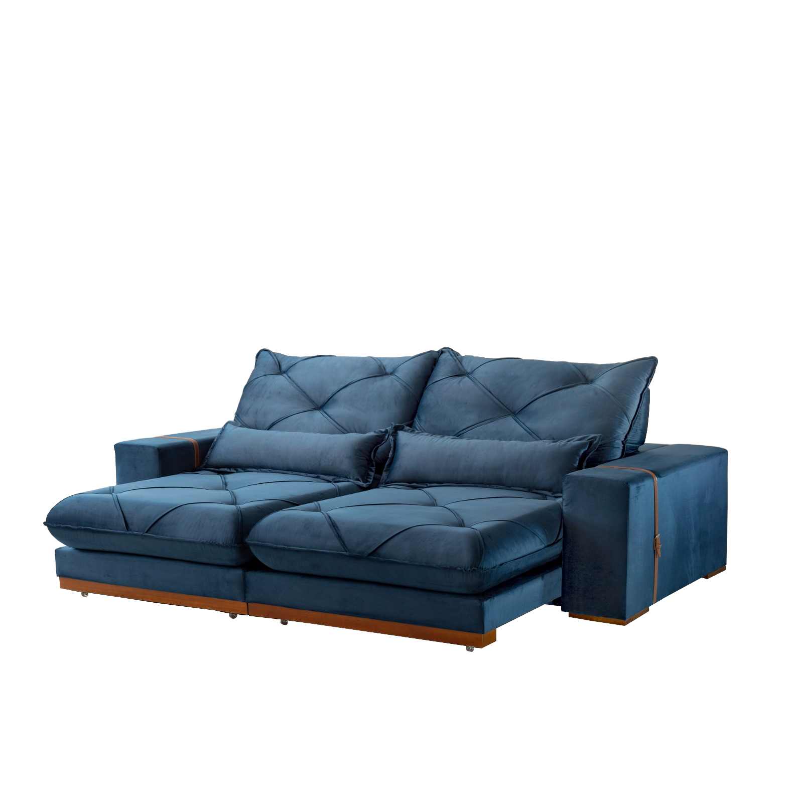 Sofá Retrátil e Reclinável Luanda 2,50 m Veludo Azul – TREVO ESTOFADOS