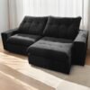 Sofá Retrátil e Reclinável Niterói 2,50 m Veludo Preto – SINGULAR ESTOFADOS
