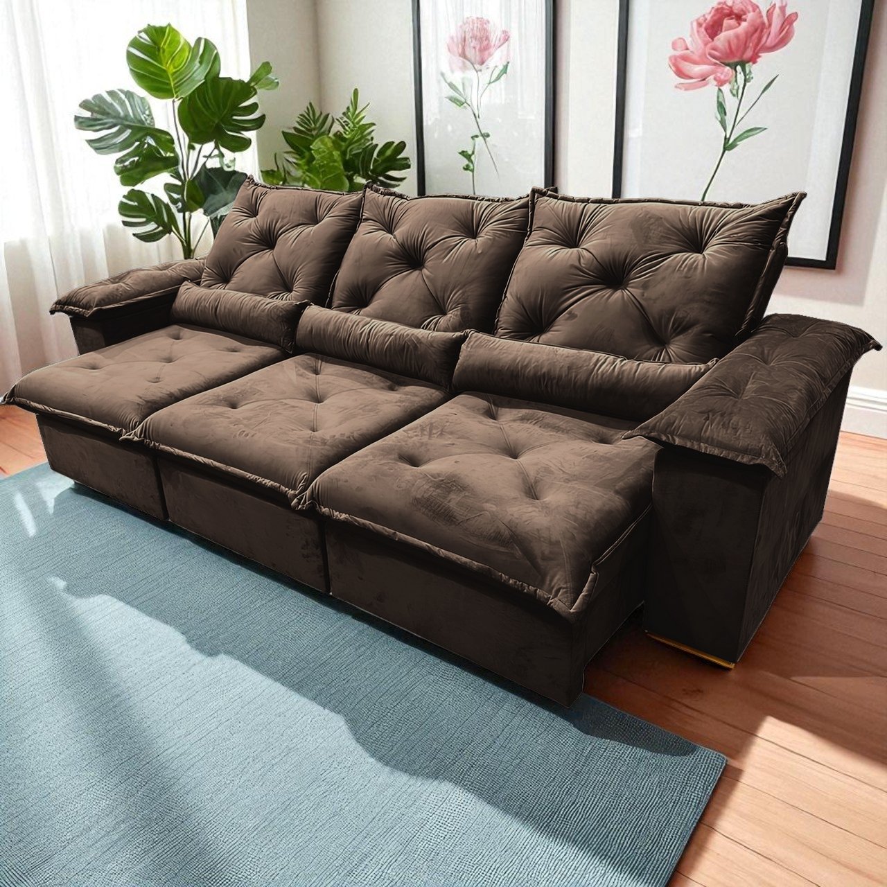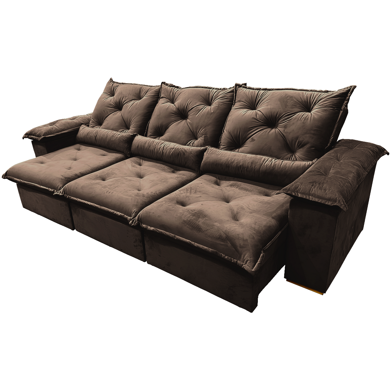 Sofá Retrátil e Reclinável Porto Madero 2,75 m Veludo Marrom – IMPERIAL DECOR