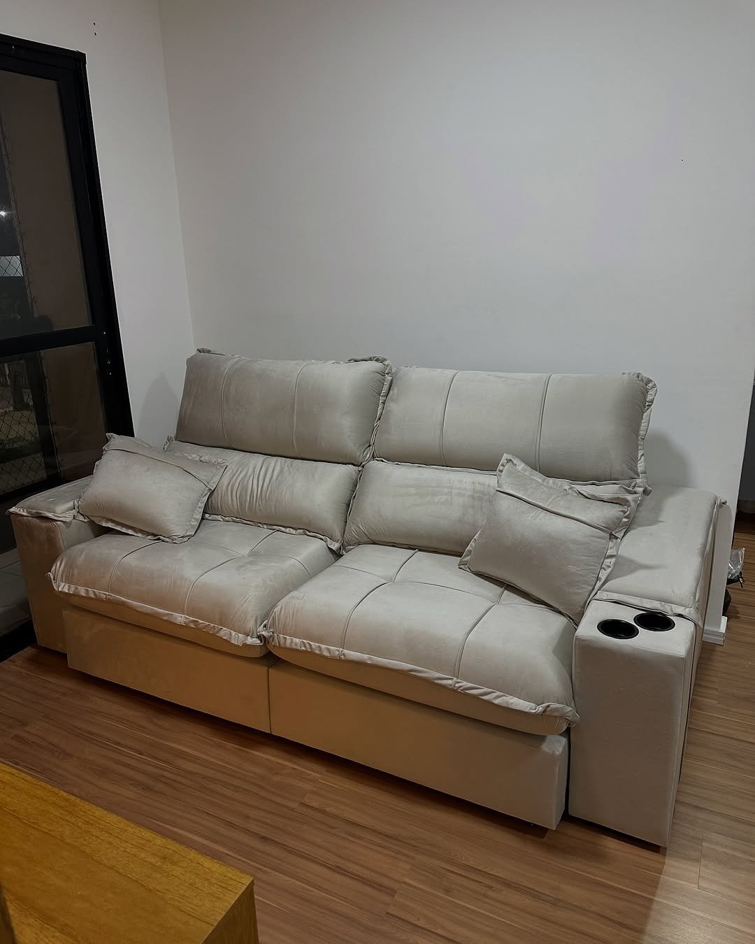 Sofá Retrátil e Reclinável Zeus/Afrodite 2,50 m Bege – ZARAT ESTOFADOS