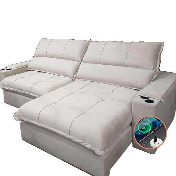 Sofá Retrátil e Reclinável Zeus/Afrodite 2,50 m Bege - ZARAT ESTOFADOS