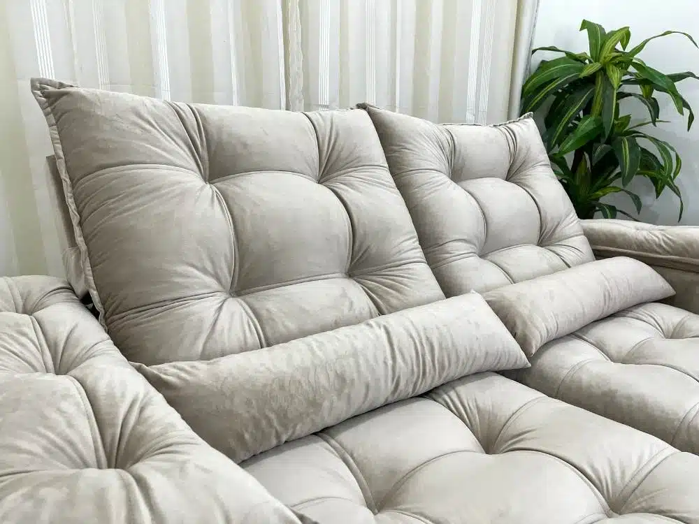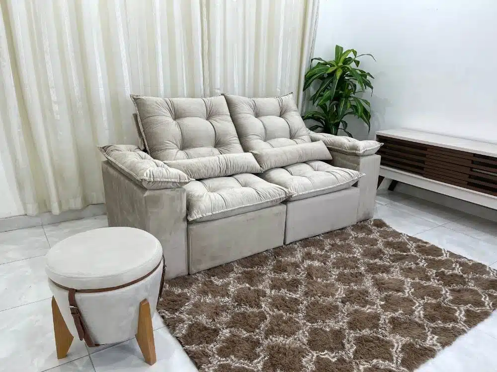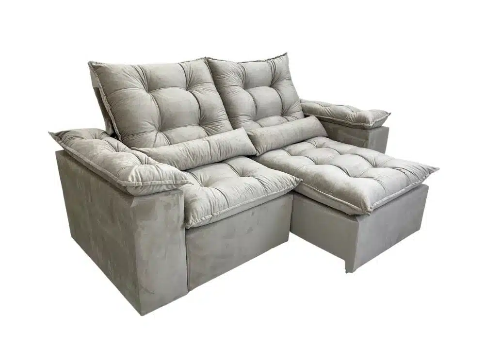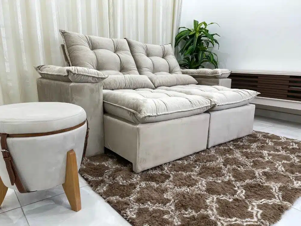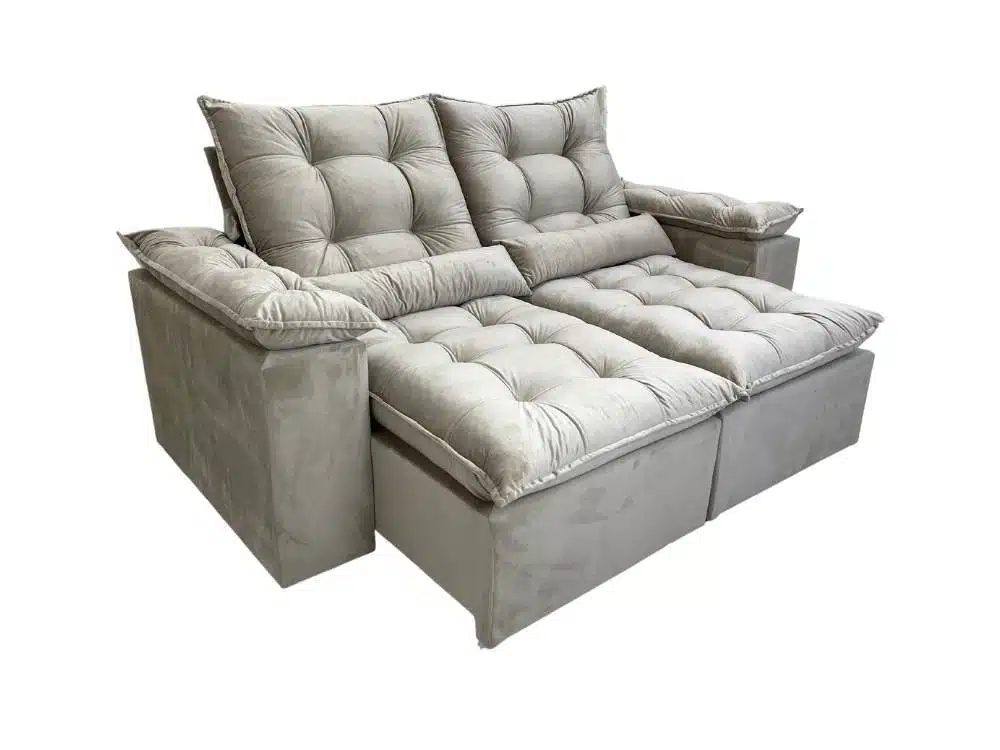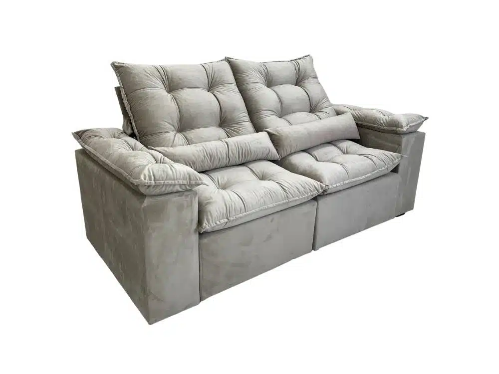 Sofá Retrátil Reclinável Atenas 2.00m – Bege Veludo