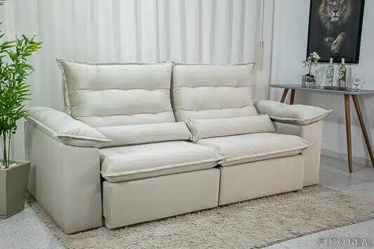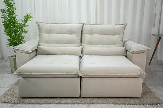 Informamos que é normal haver uma abertura entre os módulos dos sofás retráteis. Essa abertura é necessária para evitar atrito entre os módulos durante o movimento de abrir e fechar, prevenindo o desgaste do tecido.