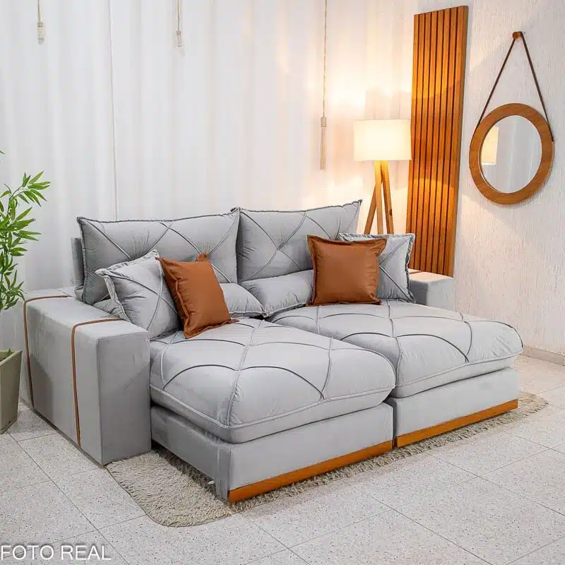 3{%%}Descrição#Benefícios das molas ensacadas{%%}Sofá Retrátil Reclinável Gran Bello 2.30m Veludo Prata 06 – Molas Ensacadas Pocket