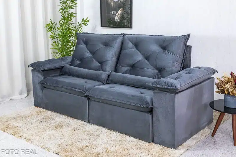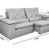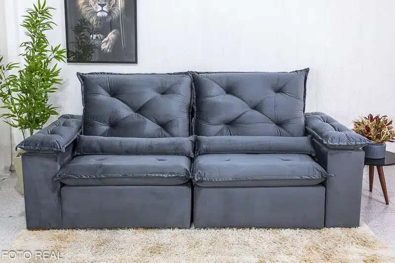 3{%%}Descrição{%%}Sofá Retrátil Reclinável Roma 2.00m Veludo Cinza 20 – D28 Soft